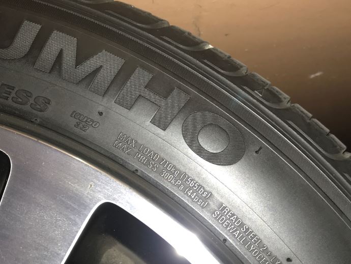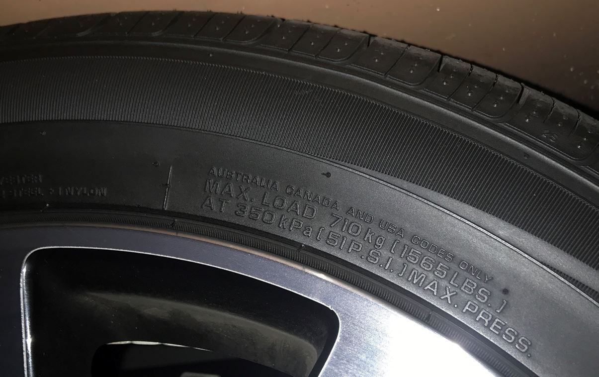 일단 타이어를 살펴보시면 많은 정보가 나와있습니다. 우리가 필요한 것은 지금 장착된 타이어에 얼마나 많은 공기를 주입할 수 있는지에 대한 정보가 필요합니다.