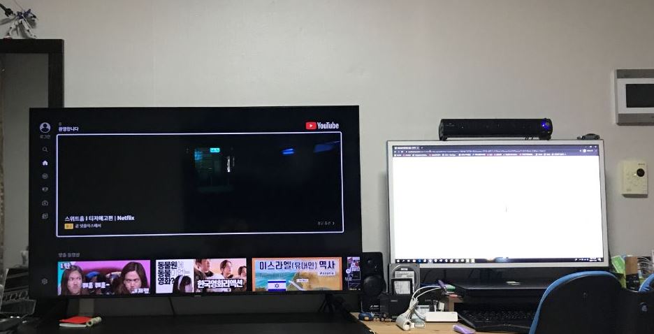위의 사진은 32인치 모니터 옆에 위치한 50인치 TV의 사진입니다.