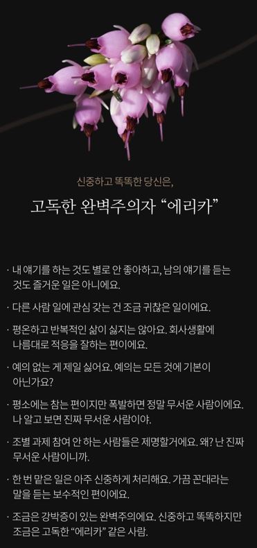 신중하고 똑똑한 당신은, 고독한 완벽주의자 “에리카”