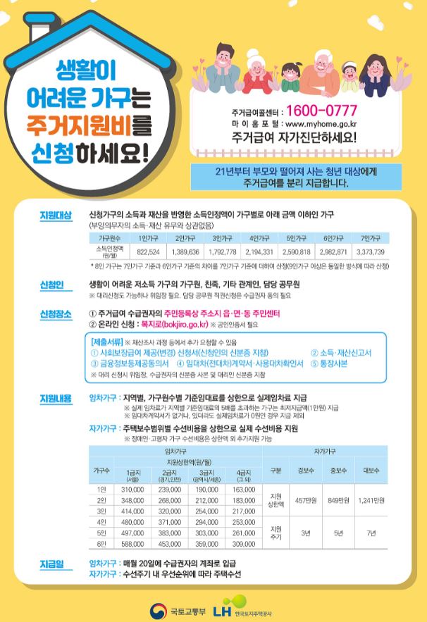 내년부터 부모와 따로 사는 만 19세 이상 30세 미만의 미혼자녀도 별도의 주거급여를 받을 수 있게 됩니다.