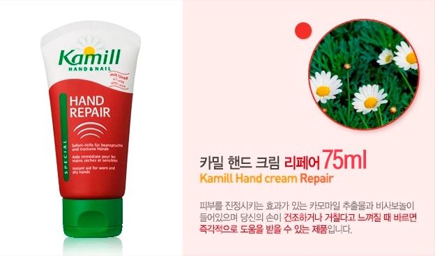 카밀 핸드크림 리페어 라인으로 물이 많이 닿아서 금방 거칠어지고 찬바람에 예민해져 있는 손에 좋다고 합니다. 우리 어머니들이 사용하시면 좋을 거 같네요.