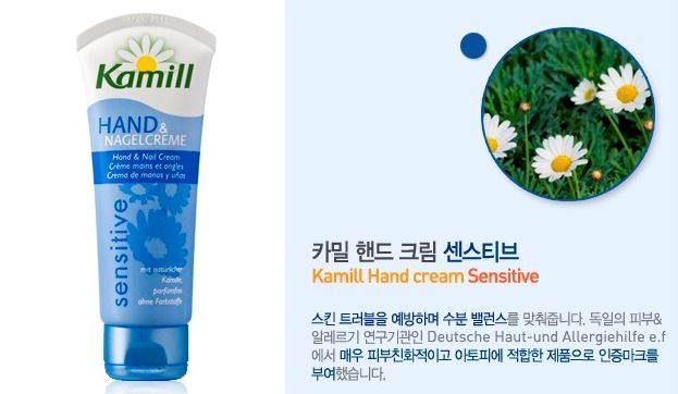 독일의 핸드크림 브랜드 카밀. '핸드 앤 네일 크림 센시티브' 제품은 겟잇뷰티 2018 뷰라벨 핸드크림 부문 1위에 선정되었습니다.